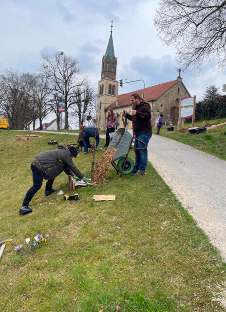 Unter Einsatz jeder Menge Handarbeit – sei es beim Rechen von Gras, Beseitigen von unerwünschten Gewächsen, oder beim Mulchen der unterschiedlichen Habitate – entstanden wieder viele Gespräche zwischen Weißenburger*innen, die sich bislang vielleicht noch nie begegnet und ins Gespräch gekommen sind.